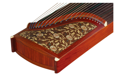 红木有广义和狭义之分,狭义红木专指酸枝木,广义红木即今天所说红木。红木色泽朱红、细密的纹理分布很有规律,组成的画面煞是好看,尽显自然之美。筝面采用五块阳面面板无缝拼接技术,使整块面板木质均匀震动,音色更加优美统一,使高音更加清脆明亮,低音更浑厚,中音更圆滑。