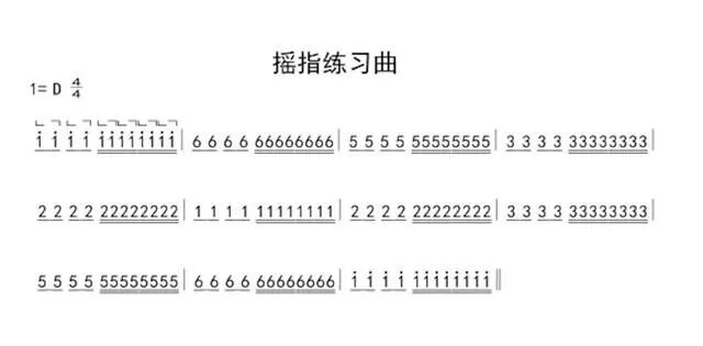 摇指应该是最难练的指法之一,那些悬腕摇、多指摇就更不用说了,既是一种技术的体现,又能使音乐变得丰富多彩,还不赶紧练起来! 初学摇指要慢练,弹奏指法、手型是基础 在摇指弹奏的过程中,活动的是手腕,手腕动的动作是左手摆动,跟我们平时跟人再见的手型是一样的。手腕左右摆动。手臂自然放松,手掌保持稳定,切忌来回翻。食指的小关节紧紧的捏住大拇指的贴胶布的地方。同时一定要注意大拇指指甲要正面触弦。 初学摇指练习曲谱反复练 练习的曲谱,大家先慢速练习劈弦和托弦,该阶段主要是稳定手型、慢慢的找到感觉后,再加快速度。按照自己最多的可以接收的速度来即可,千万不要太着急。稍微增多了节奏,也是速度由慢渐快。 二、四点练习 说起来四点练习就是勾托抹托练习,但练起来可没那么简单,而且还有很多以此为基础的指法,比 如勾托抹托,抹托抹托勾托~~,有没有晕了? 另外需要注意:勾托抹托指法难点是三个手指的交换,初学者常会在第三个抹指法时用错指法。弹奏时注意所有关节在运动时向掌心运动,大关节小关节都要运动灵活。手臂、手背和指关节不要向上跳,保持平稳和放松。无名指、食指不要翘起。 三、快速指序 古筝指序技法体系是在继承传统基础上古筝技法的一次革新,它把物理学中的惯性和对称原理运用 到古筝弹奏中,从根本上消除了由于技术上的障碍造成的艺术上的缺陷,从而可以更完整的表现音乐形象,使以往望尘莫及的高难度技术变为可能,尤其明显的是在提高演奏速度上。 练习快速指序的基本要点分为两个部分 1、力度 在我们演奏的过程中,经常会发现自己的声音又虚又飘,手指用不上力,用了很大的劲却只有很小的声音,那么一定是你的发力方式出了问题,我们该如何解决这个问题呢? 练习方法:单指训练,每一根手指单独进行发力训练。 注意要点: 发力是瞬间的,触弦前触弦后手都是松弛的,千万不要僵。 每根手指的力量要平均,特别要训练无名指,声音不要虚了。 2、速度 速度应该是大家都很关注的问题,总有人抱怨自己的速度达不到,声音很糊不清晰,这个时候你不要着急,要找找解决的办法。 练习方法:对着节拍器,从慢速开始练,坚持多遍连续练习,逐步达到标准速度,特殊指法单独训练。 注意要点: 触弦迅速,像小鸡啄米一样,又快有准,保证你的力点清晰度,避免杂音。 乐曲中的快板段落,练习时千万不要心急,循序渐进的练习,贵在坚持! 四、琶音 琶音,听起来好似流水般的声音,像竖琴一样,所以,很多乐曲都会用到它。 练好琶音,需要练好各个手指的独立性以及左右手腕的松弛度。这两个都属于基本功的范畴,手腕练习松弛需要一周, 每天坚持30分-50分的抬手腕,就像骑摩托车加油一样上下有频率的抬手腕。这样坚持一周,你的手腕会很松弛。尤其是左手,要像右手一样,因为左手不经常发力。 此外,每天坚持练习高抬指。琴上功夫有时需要琴下多练习。当然,还要回到琴上。这样半个月的光景坚持下来,手指和手腕都很松弛灵活,琶音自然就不是难事了! 琶音练习方法:点击文字链接查看