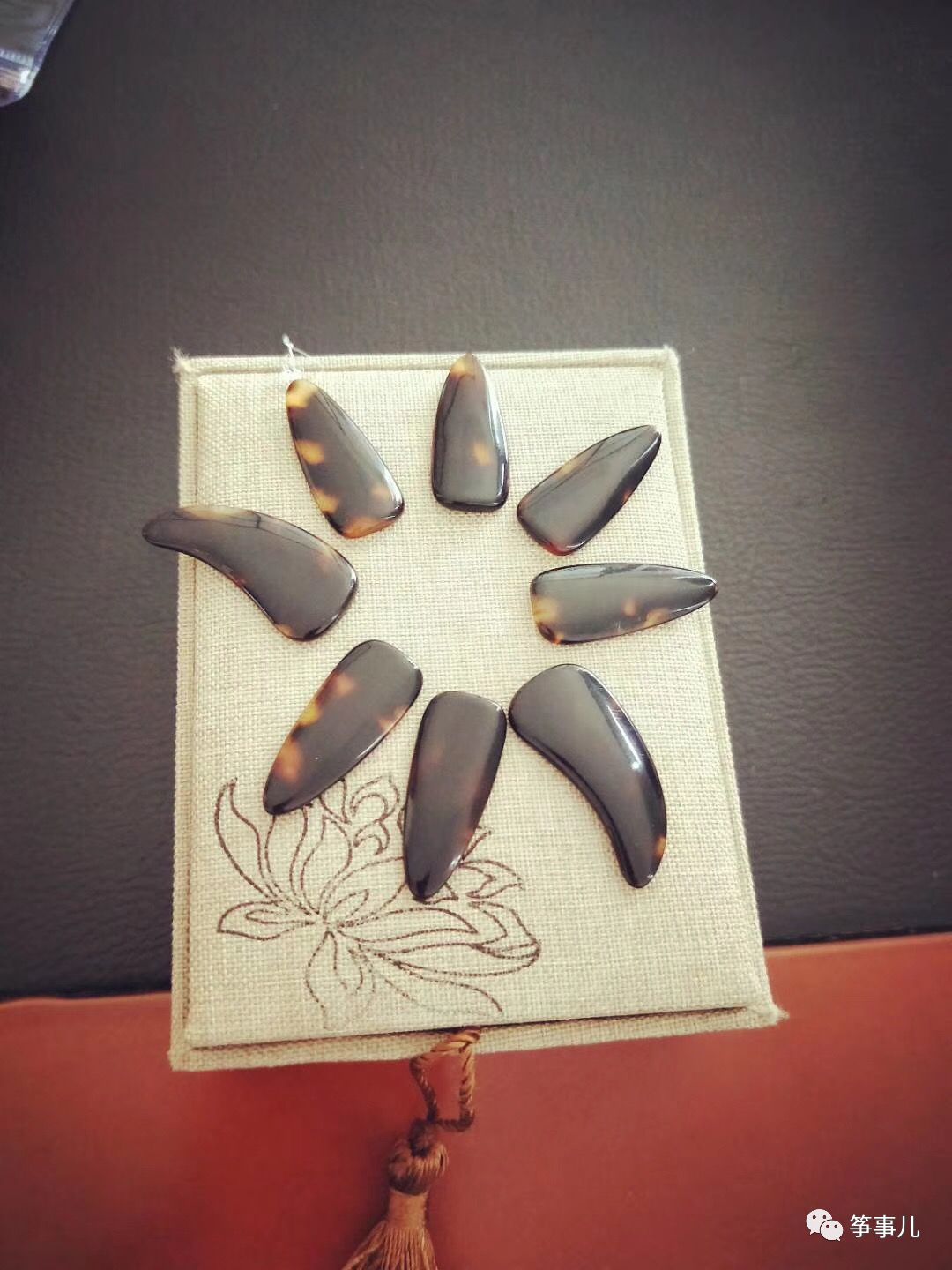 常用的材料包括:塑料、牛角和玳瑁。(当然玳瑁的最常用,也最好:)
